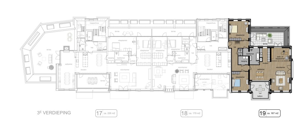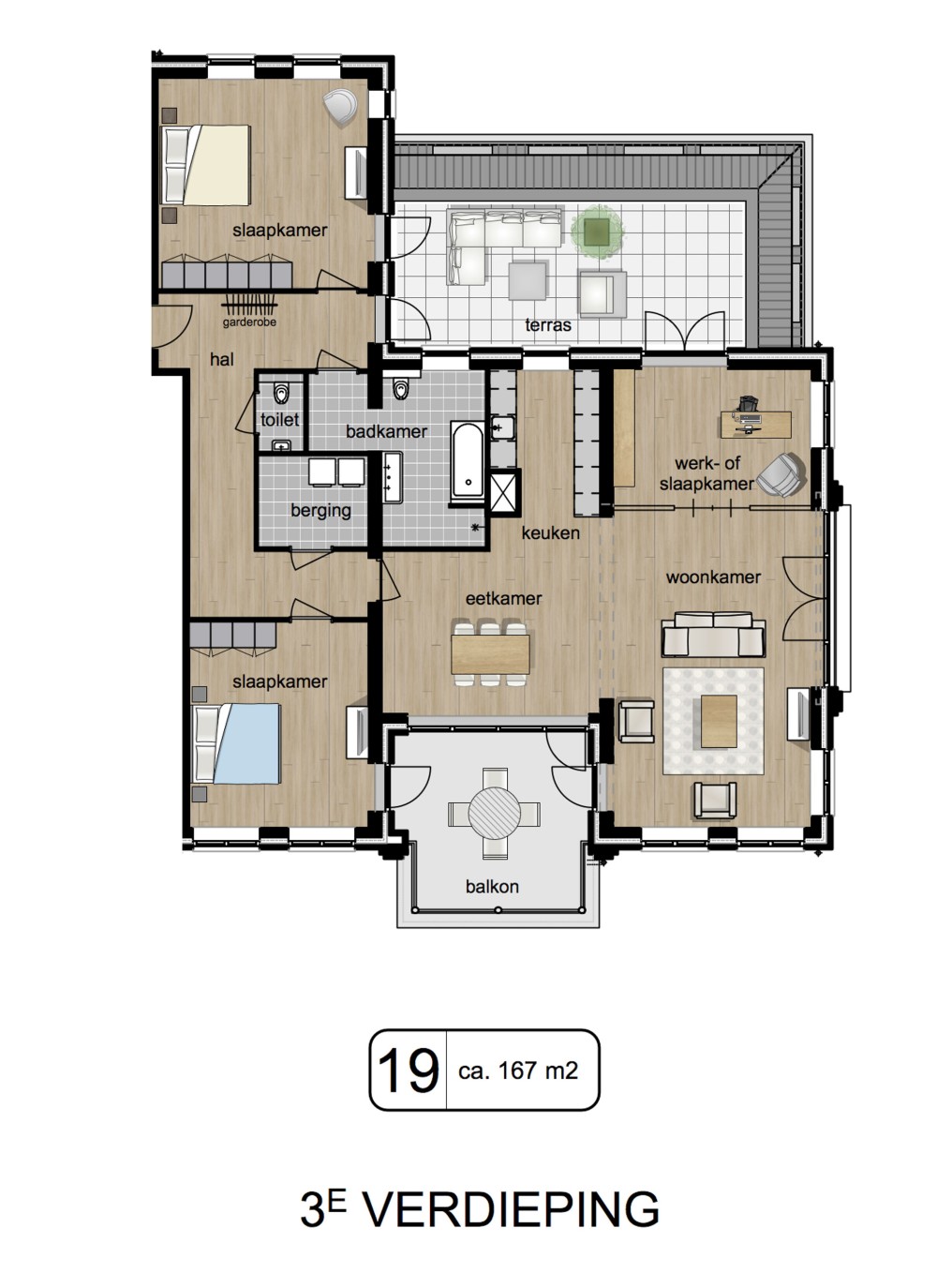 Een fenomenaal penthouse op de hoek van de Parel van de Delta met prachtig weids uitzicht. Deze parel van ca. 167m2 beschikt over twee ruime slaapkamers en een werkkamer die tevens als extra slaapkamer kan dienen. In de entreehal treft u een aparte bergruimte en separaat toilet aan. Het penthouse heeft een uniek uitzicht vanaf het royale balkon maar u kunt ook gebruik maken van het beschutte terras aan de achterzijde van het penthouse. U kunt hier iedere dag genieten van een uniek vrij uitzicht met de privacy die u wenst.